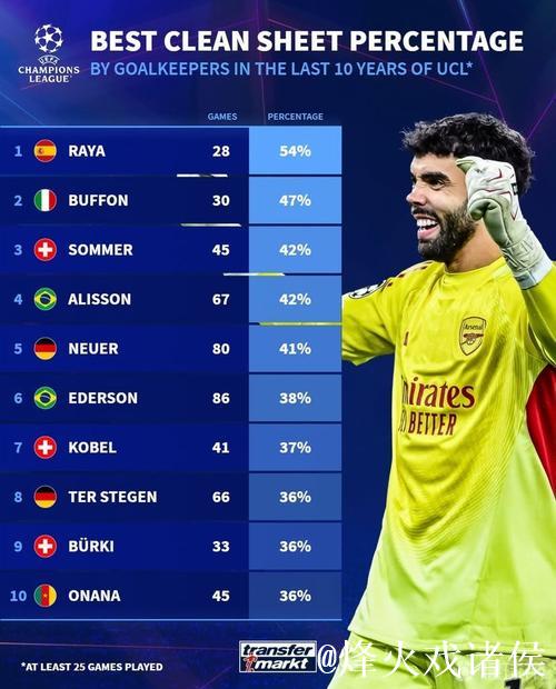 近10年欧冠门将零封率的最新统计出炉后,在球迷圈和专业领域都引发了不小的讨论。出人意料的是,位居榜首的并非传统意义上的“金手套”常客,而是这两年才在豪门站稳脚跟的西班牙门将大卫·拉亚,他以高达54%的